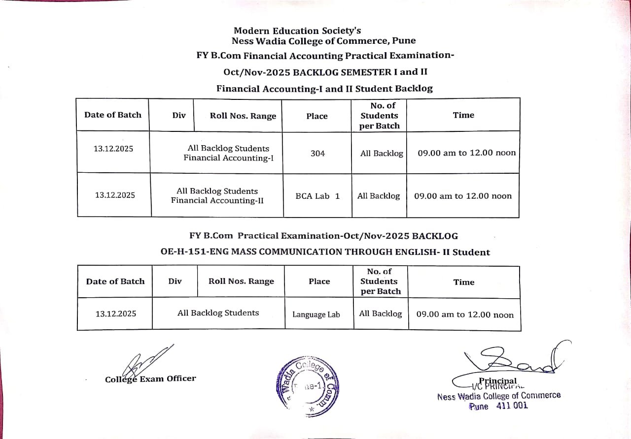 F.Y.B.Com Practical Examination Oct/ Nov - 2025.