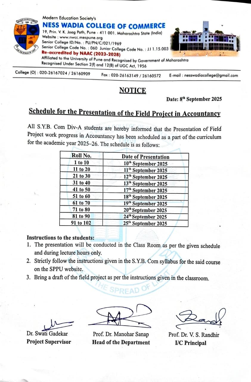 F.Y.B.Com (NEP) Roll Call 2025-2026
