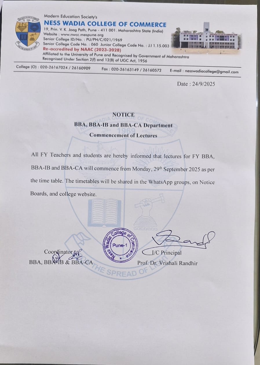Notice: All FY BBA,BBA-IB & BBA-CA Commencment Lectures